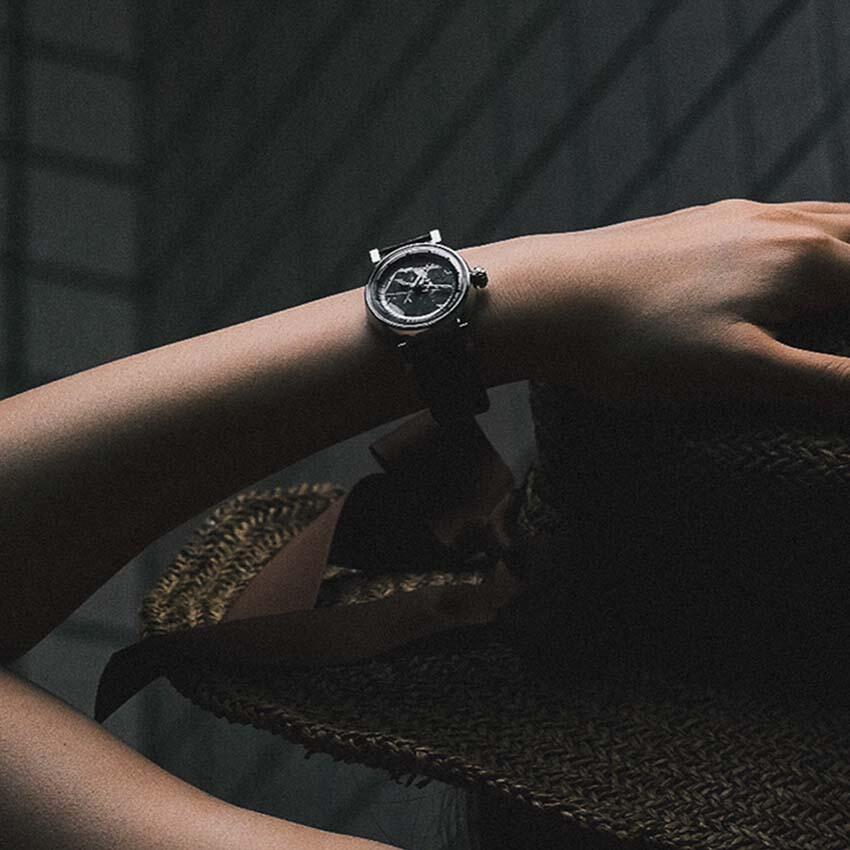 Solar Wind features our own engineered and manufactured K1 movement with 65-hour power reserve indicator, diamond cut luminous filled hands and 5 atmospheres water resistance. On the case back HORAGE, laser etched on the movement’s rotor can be viewed through the sapphire crystal window. Engraved on the stainless steel case is “Following the light of the sun, we left the old world”.