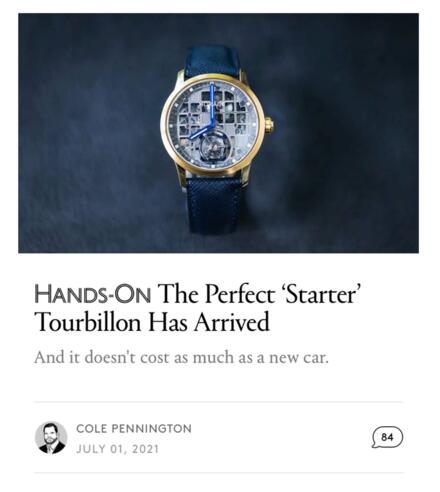 Should you have the time it would be wonderful if you could share your take on the Tourbillon 1 in the Hodinkee comments. Let's see how much of a conversation we can muster up.