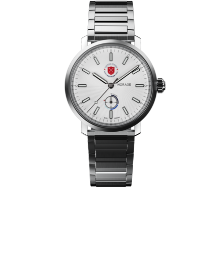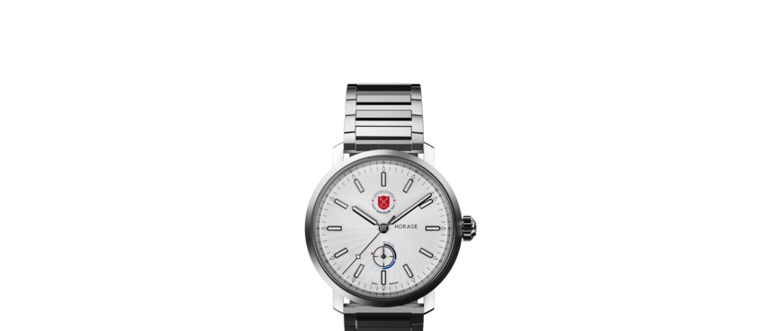 Dial: Biathlon loupe inspired white with US Biathlon logo at 12 o’clock and HORAGE at 3 o’clock, applied indices with Super-LumiNova®, special groomed course pattern on bottom half of dial.
