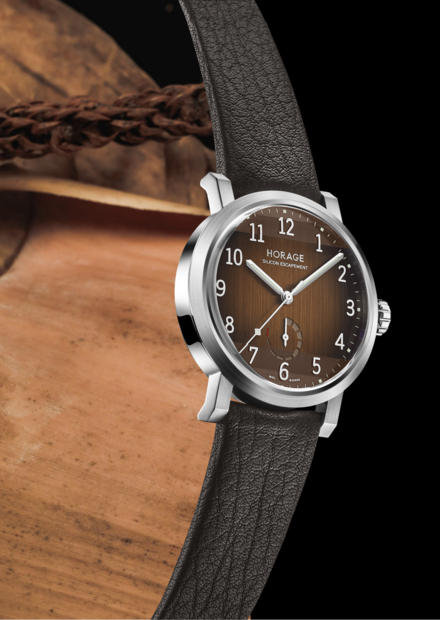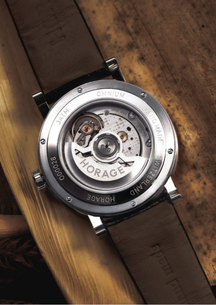 摆陀上雷射雕刻饰有HORAGE商标,与现代化夹桥板的装饰更显相得益彰。
