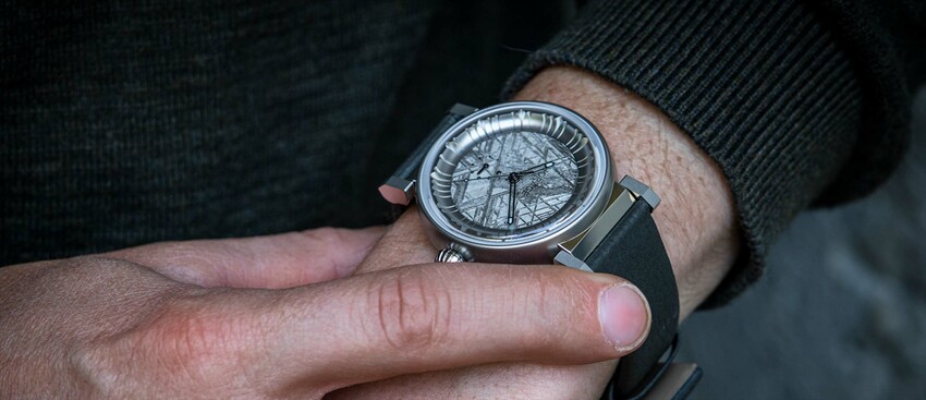然而,陨石表盘堂而皇之地吸引了人们的目光。每只Solar Wind的陨石表盘都是独一无二的,来自43亿年前的外太空,陨石的价值是黄金的40倍,也因此使其成为现代制表工业中豪华表盘最受欢迎的材质之一。陨石表盘上独特的天然线性结构是熔岩经过数百万年的极慢冷却而形成的。
