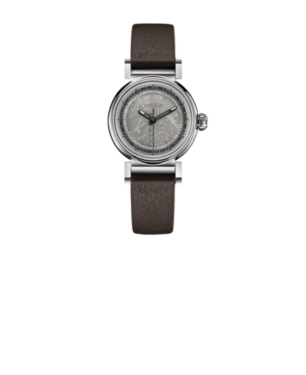 在表底盖可以通过蓝宝石水晶镜面看到机芯自动陀上雷雕的HORAGE标志;而不锈钢表底盖上则刻有克里斯托弗·哥伦布的名言:“迎着阳光,我们向过往的世界道别。”