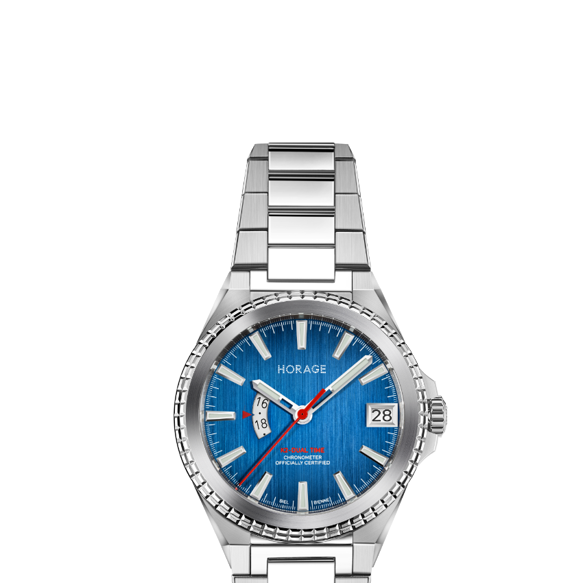 表冠:904L不锈钢旋入式表冠,装饰有 Horage的“H”图案。