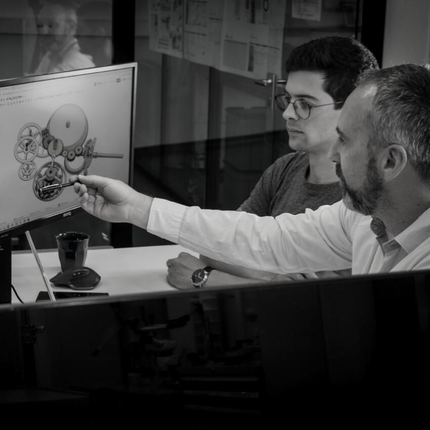 从工程设计、研发、加工和组装,全都在我们瑞士比尔的工厂进行,这里是所有制表魅力的发源地。我们的团队精简、极富超高效率与创新精神,致使我们的价格从设计开始到腕表轮廓,甚至是机芯到最终成品都能优于市场对手。我们的团队虽然不大但仍持续扩展,成员有-- Jonas, Silvan, Lenny, Laurent, Florian, Antoine, Pascal and Markus -- 每年可生产3000多只K1机芯,同时致力于未来新机芯的研究开发,并提供第三方品牌服务,持续在钟表领域中与时俱进。