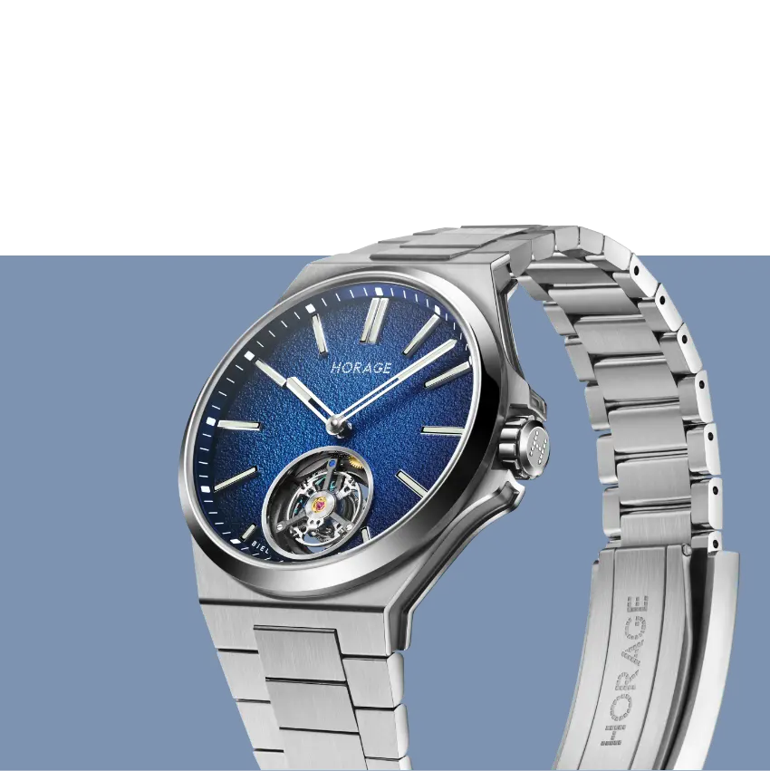 精美的錶鍊配備了Horage專利HMAC微調錶扣,以1毫米為單位,提供10毫米的調整範圍。