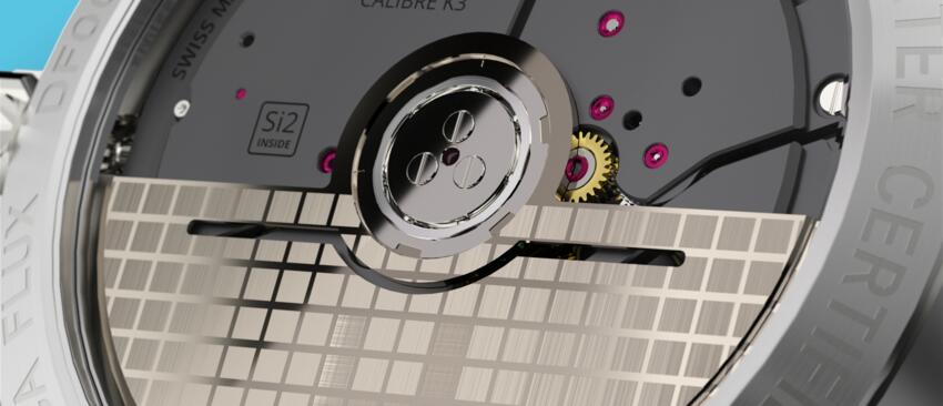 K3機芯配備矽擒縱機構,包含擒縱叉與擒縱輪。此外,游絲亦由此高科技材料製成。