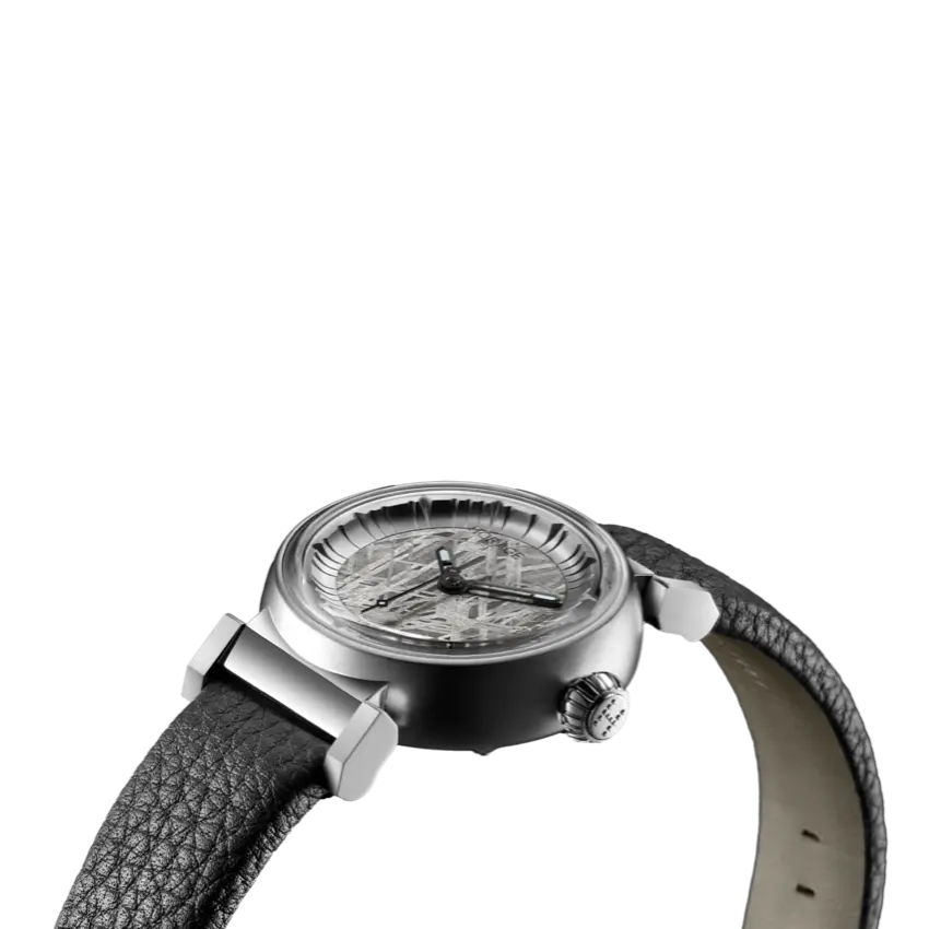 然而,隕石錶盤堂而皇之地吸引了人們的目光。每只Solar Wind的隕石錶盤都是獨一無二的,來自43億年前的外太空,隕石的價值是黃金的40倍,也因此使其成為現代製錶工業中豪華錶盤最受歡迎的材質之一。隕石錶盤上獨特的天然線性結構是熔岩經過數百萬年的極慢冷卻而形成的。