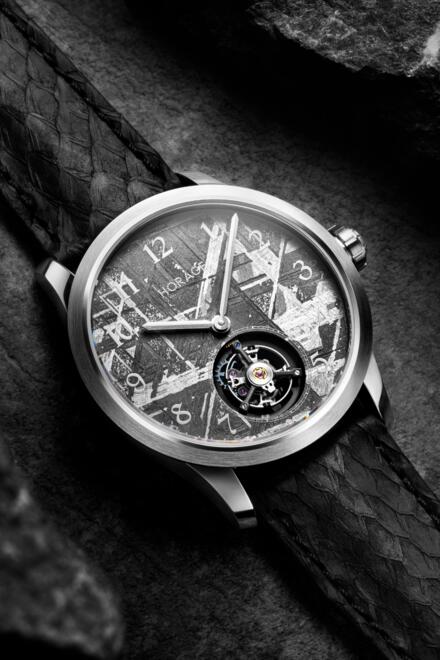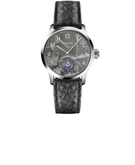 隕石經過數百萬年的太空旅行,然後脫離彗星,穿過保護地球的大氣層,在摩擦、壓力以及與大氣層中氣體的化學作用下倖存下來。此時,一顆流星誕生了,火球劃過天空,成為一顆流星;最亮的被稱為流星體。這些錶盤是從瑞典發現的鐵隕石上精心切割下來的,然後在瑞士製作成錶盤。